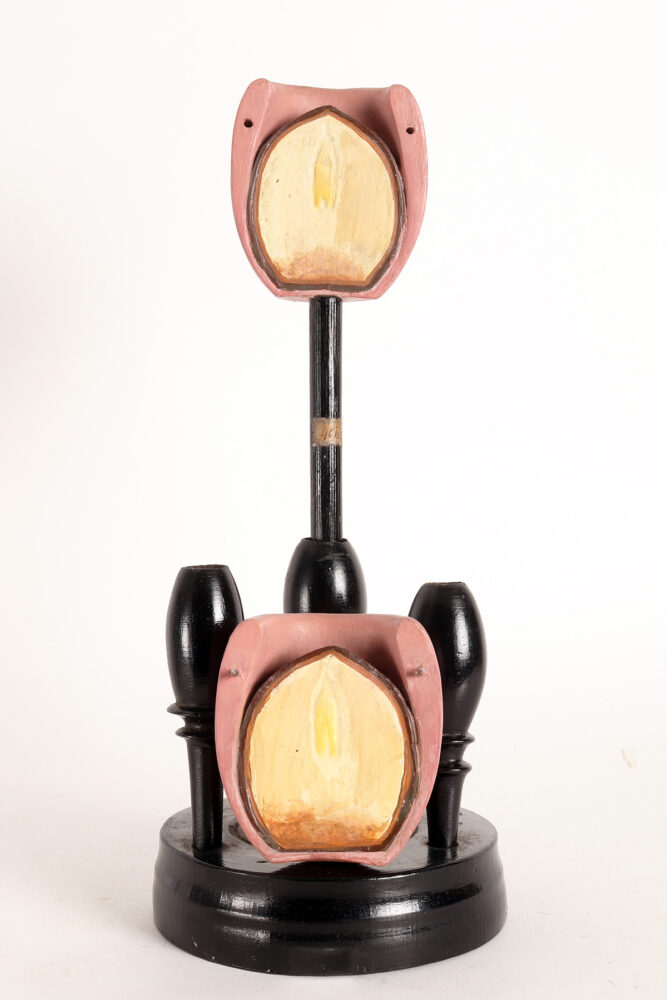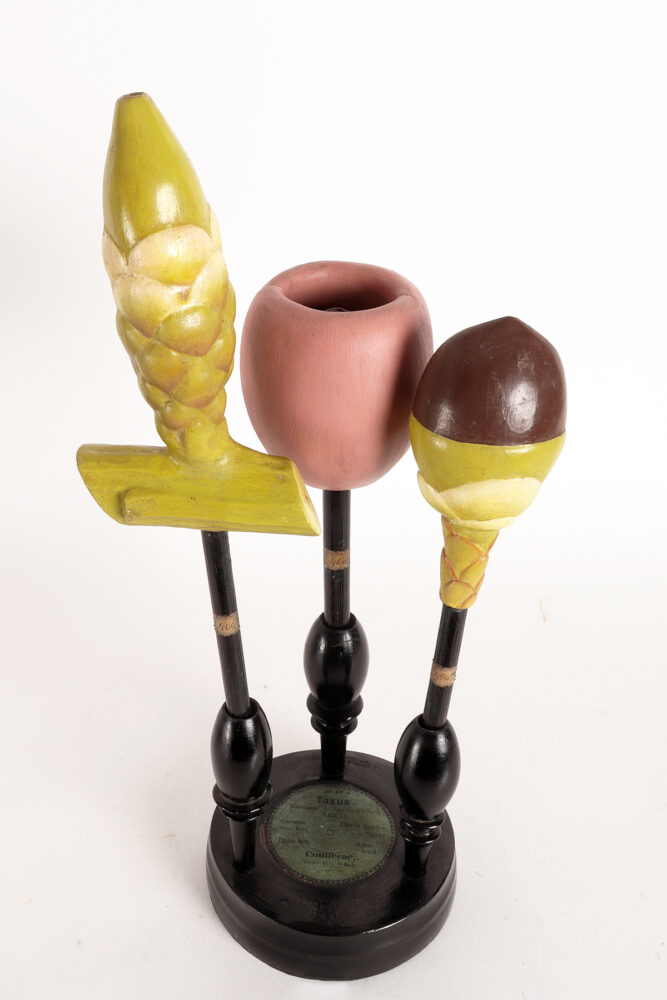 A rare botanical model of the Brendel, Taxus N.40a female (Coniferae), Badger. The round base in ebonized wood holds three models: an example of a male Sporophile, a female Aril enlarged about 80 times and a seed.