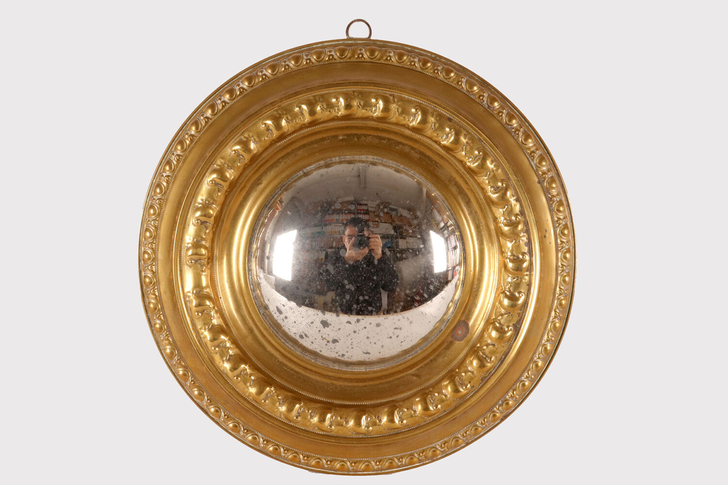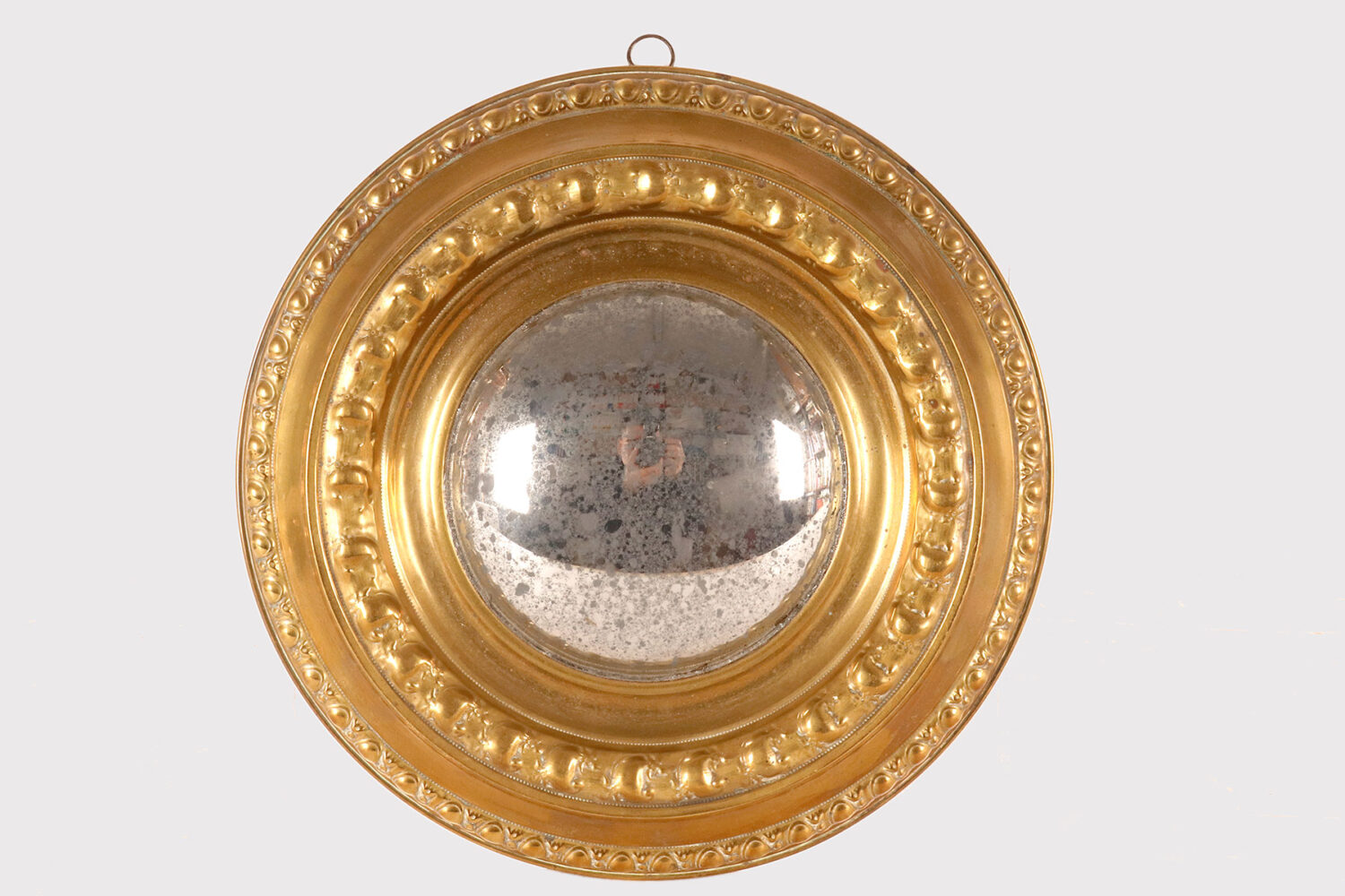 A pair of convex mirrors with smooth, embossed brass frames. Italy, late 19th century.