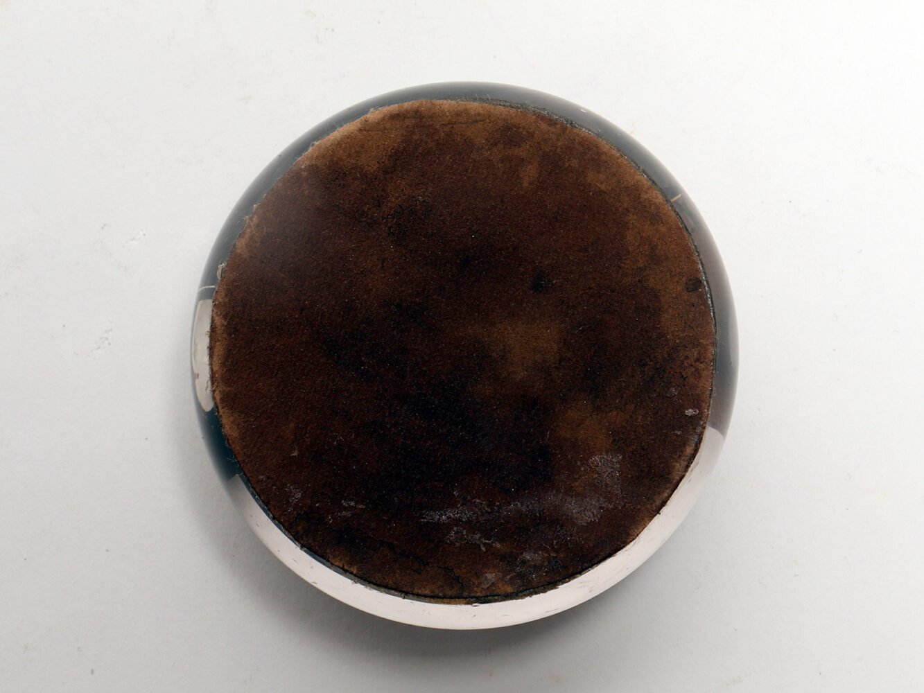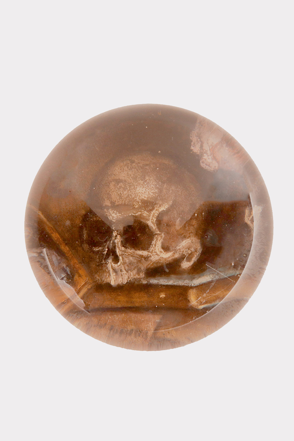 Antique bubble glass paper weight, with vanitas Memento Mori, Italy 1850.