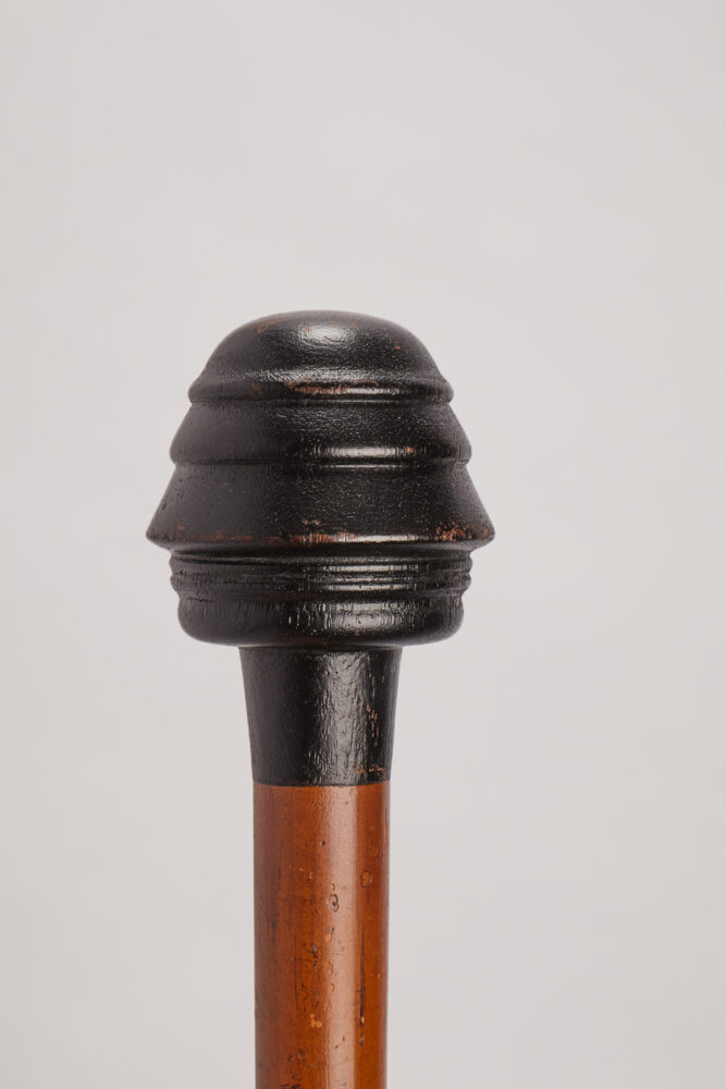 Gadget-System walking stick: shadow gadget cane with Napoleon profile on its ebonized wood handle. Malacca wood shaft. Iron ferrule. France 1870 ca.