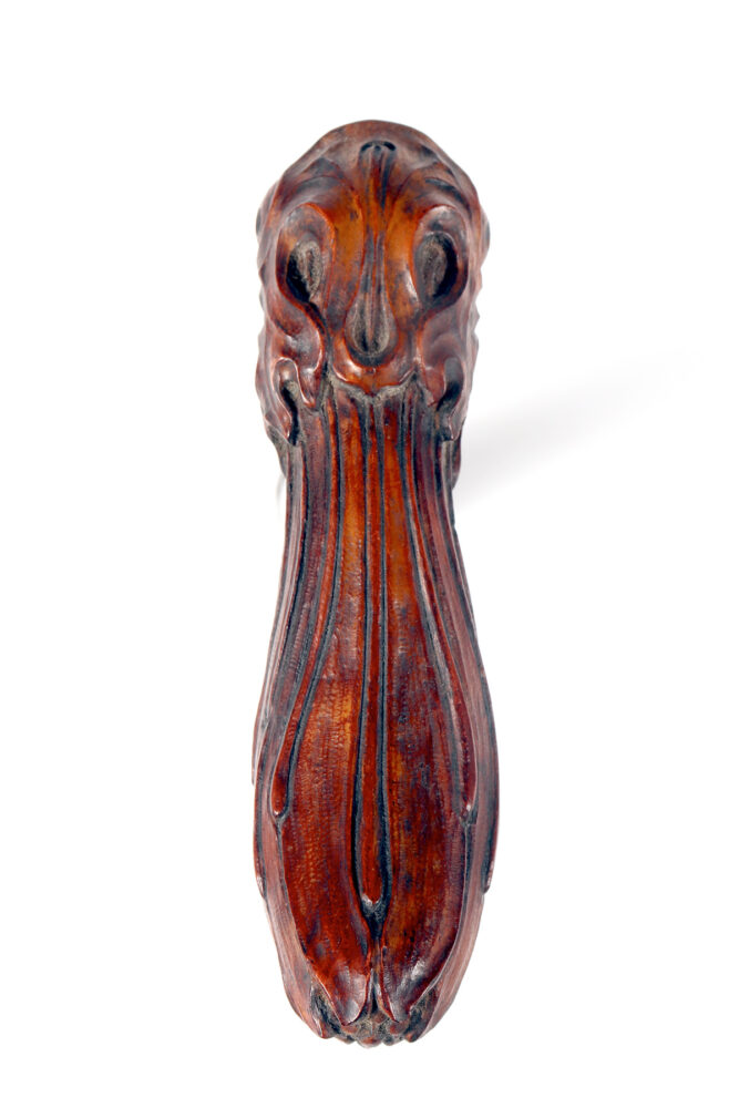 Bastone Art Nouveau in legno di bosso, raffigurante la Dea Cerere (Demetra), firmato Vincenzo Gemito, Italia 1900.