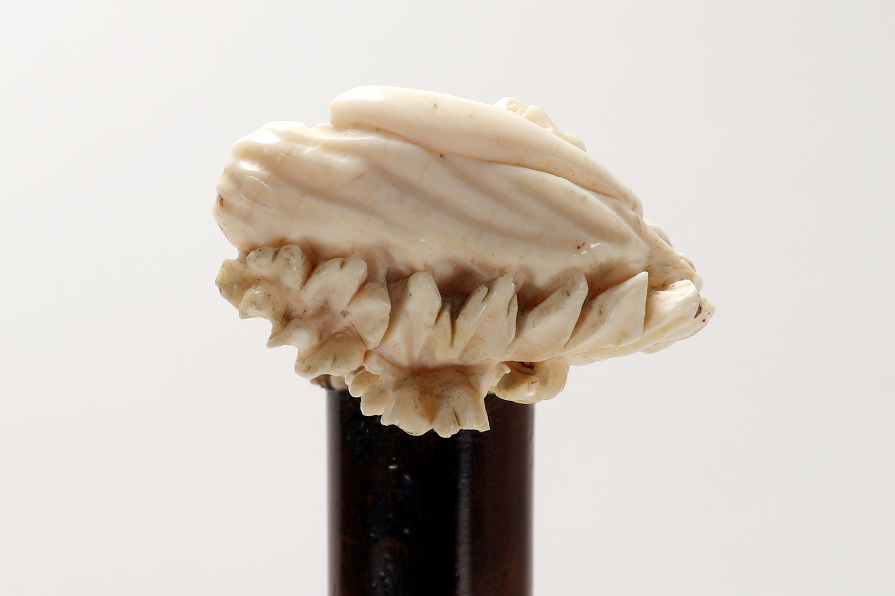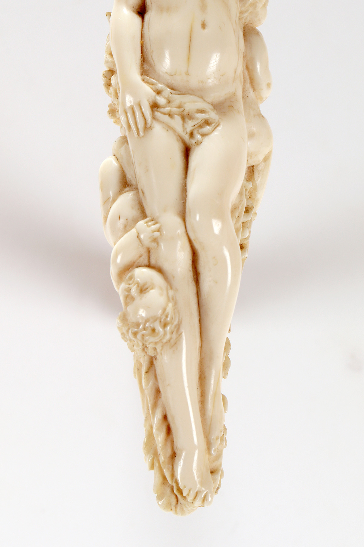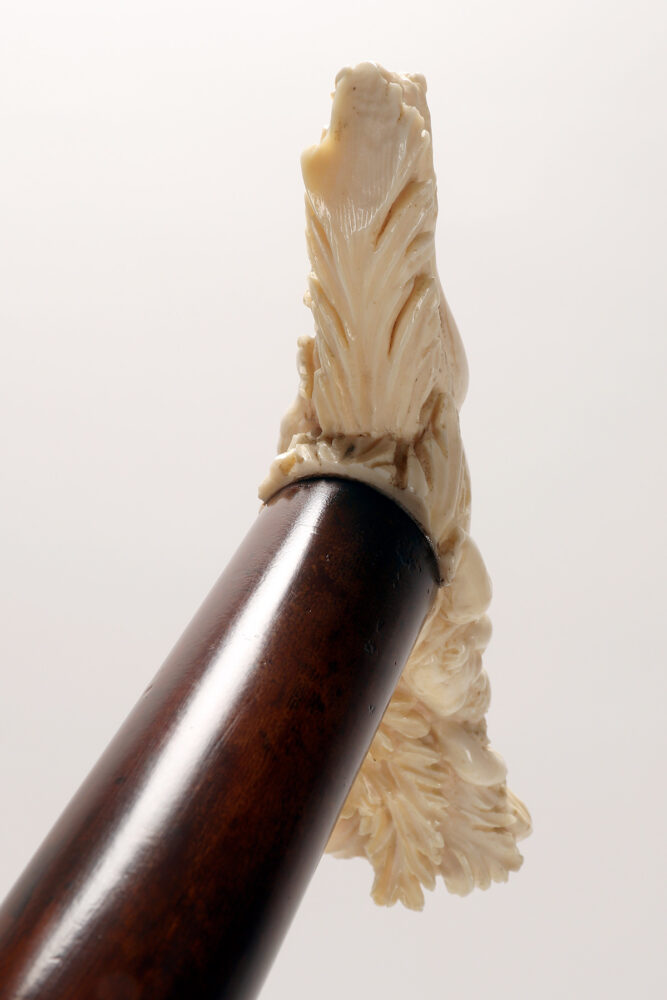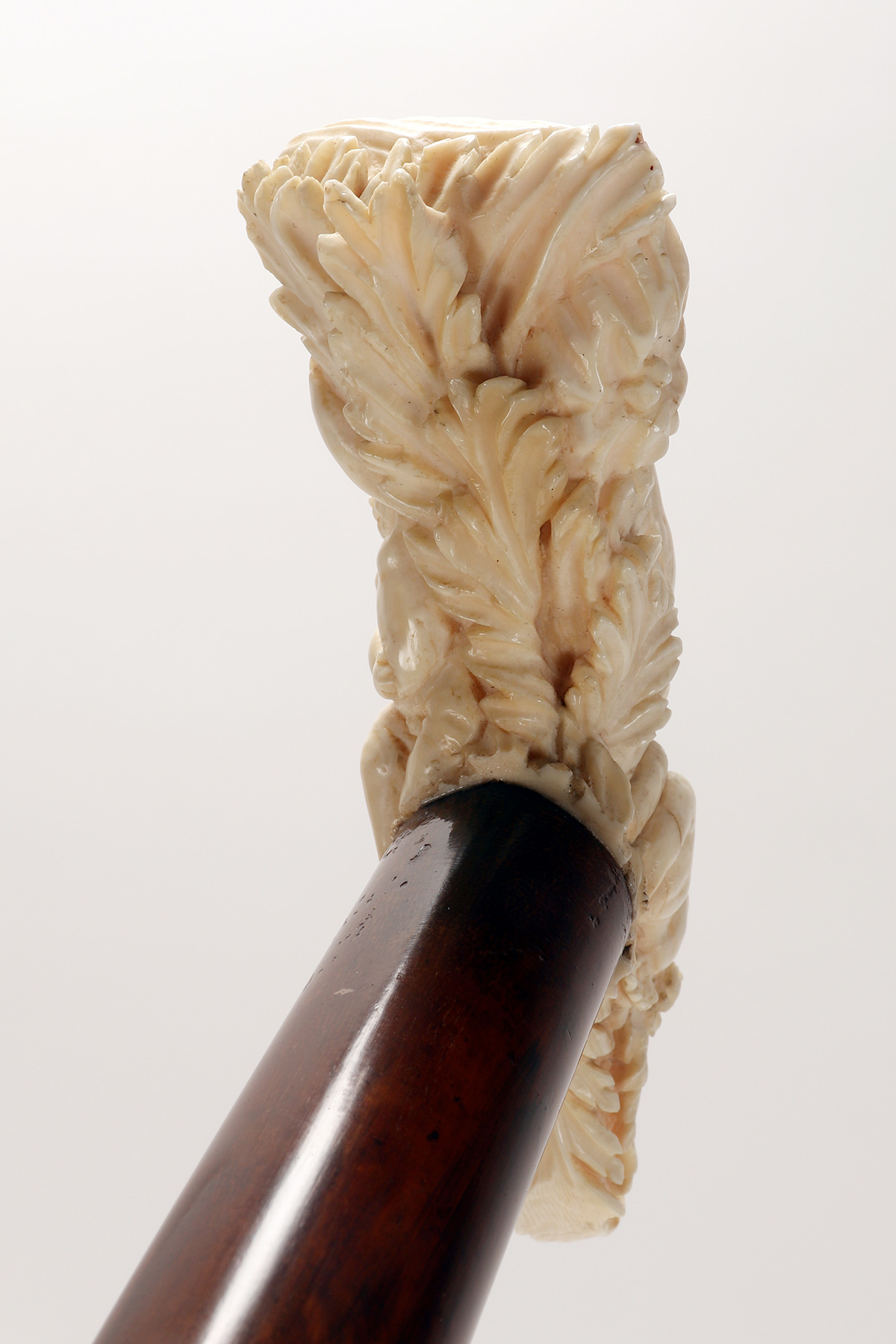 Bastone da passeggio, pomolo in avorio di grosse dimensioni intagliato di Gerard van Opstal, Fiandre metà XVII secolo.