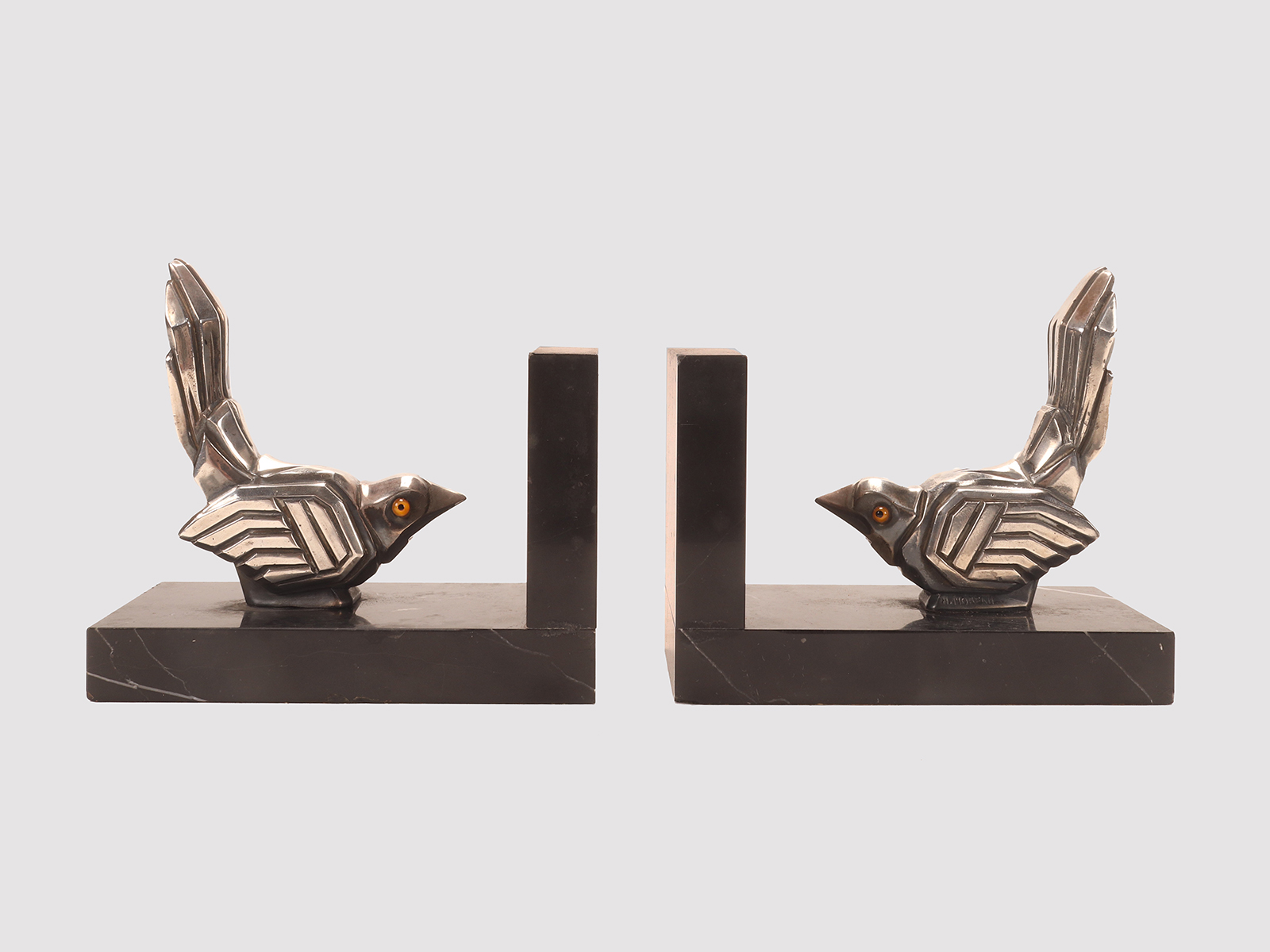 Bookends by Hippolyte Francois Moreau, depicting sparrow birds, France 1925.