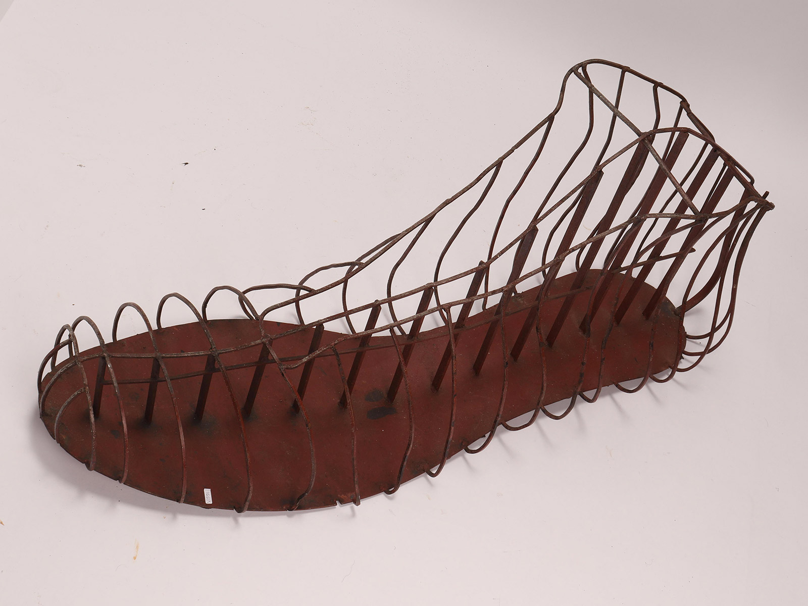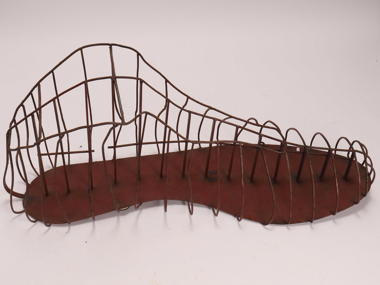 A folk art iron metal bars sculpture, a shoe. USA 1920 ca.