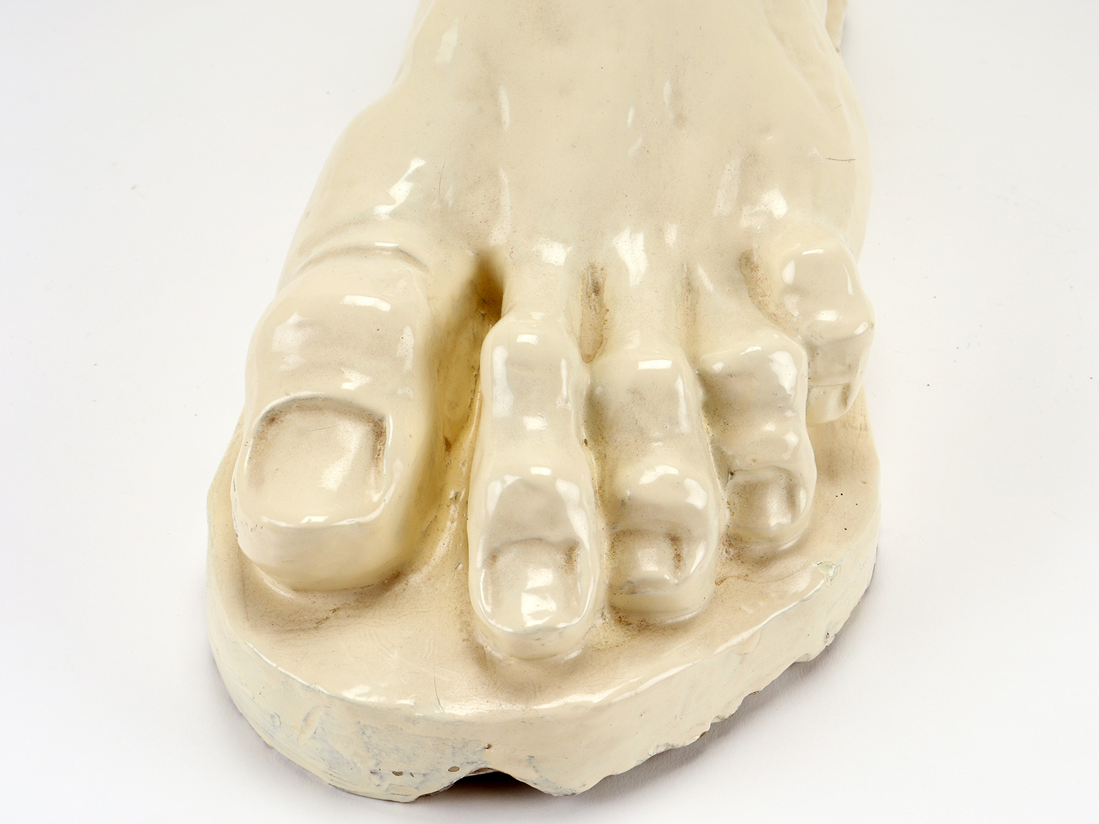 Glazed clay sculpture depicting a foot, white color. For use for teaching drawing in academy. Italy circa 1900.