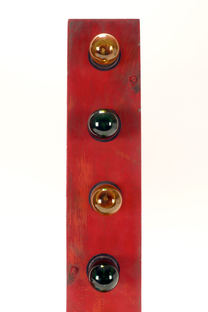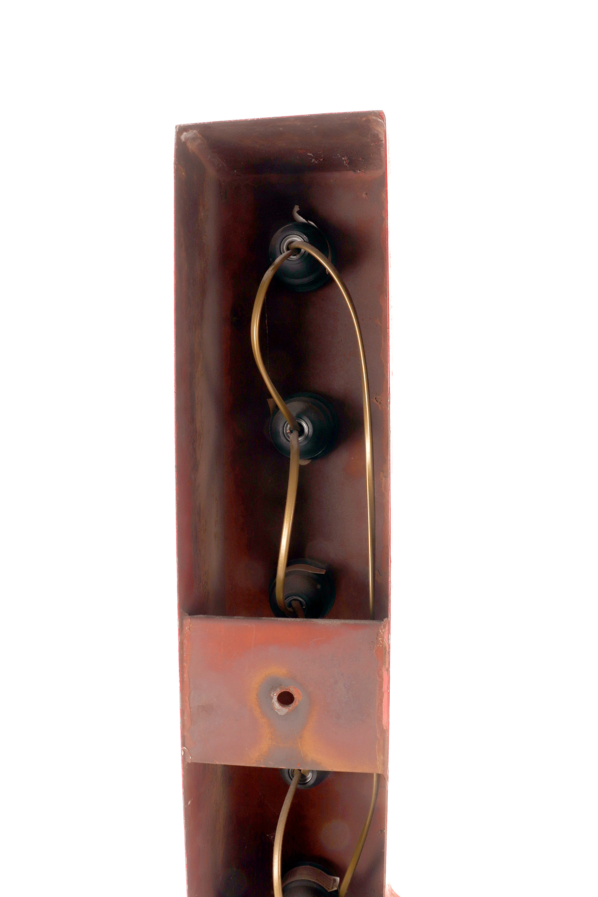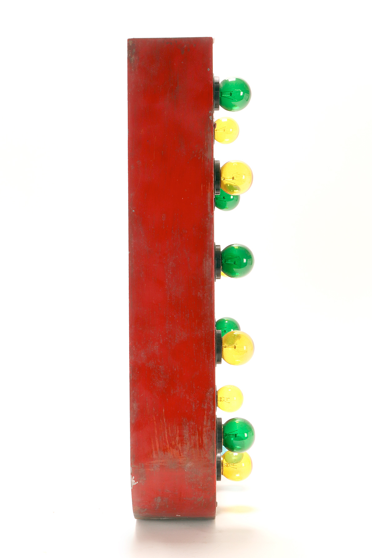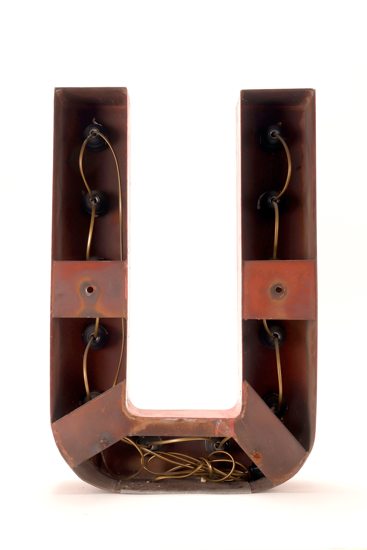 Grande lettera U in latta dipinta, colore rosso, rielettrificata illuminata con lampadine, usata come insegna di un circo. USA circa 1930.