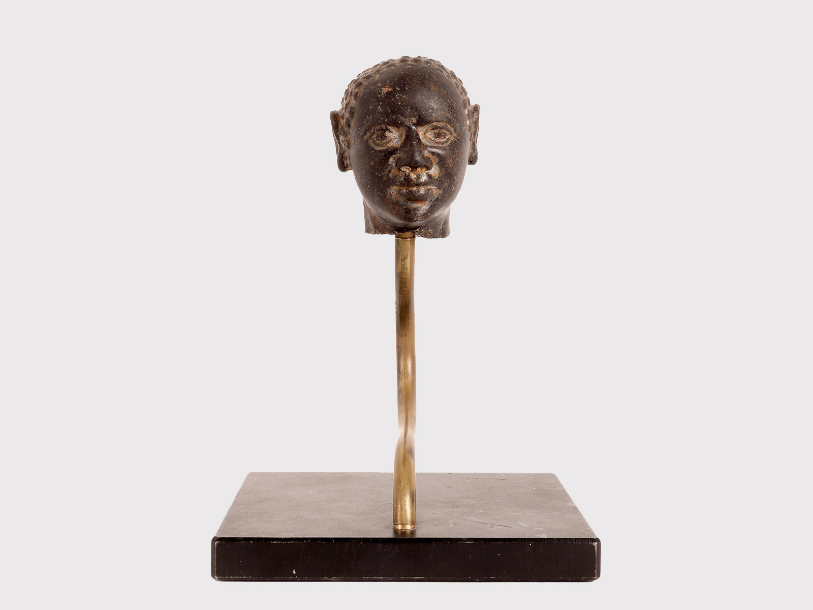 Head of a man in black granite, mounted on an iron base, Russia, early 18th century.