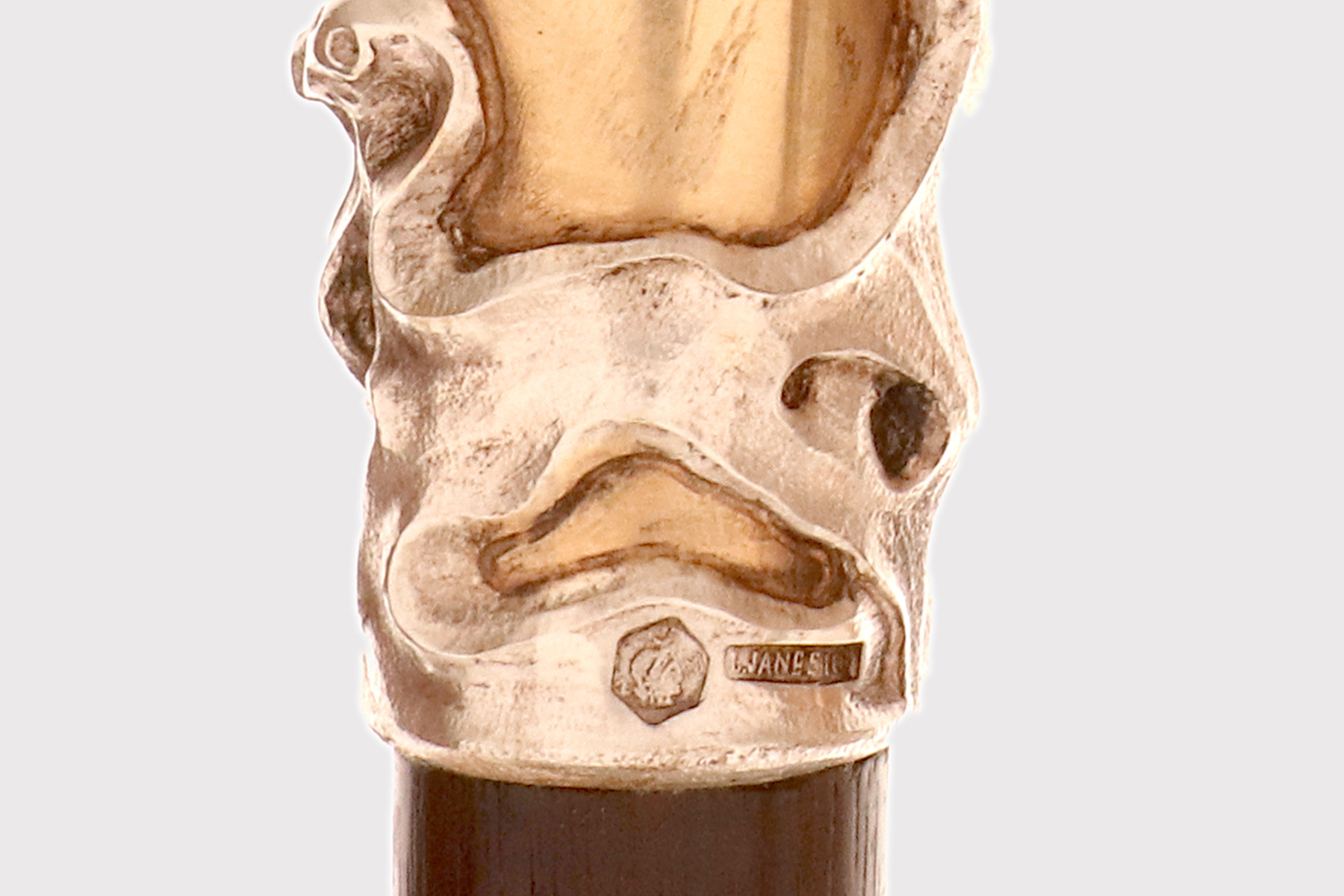 Jugendstil walking stick, silver depicting a cicada with a woman’s face, signed Janesich, Trieste, Austro-Hungarian Empire, early 1900s.