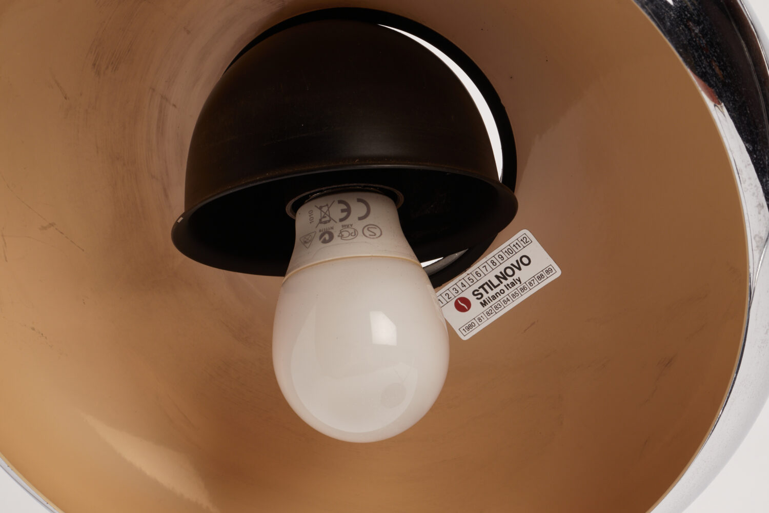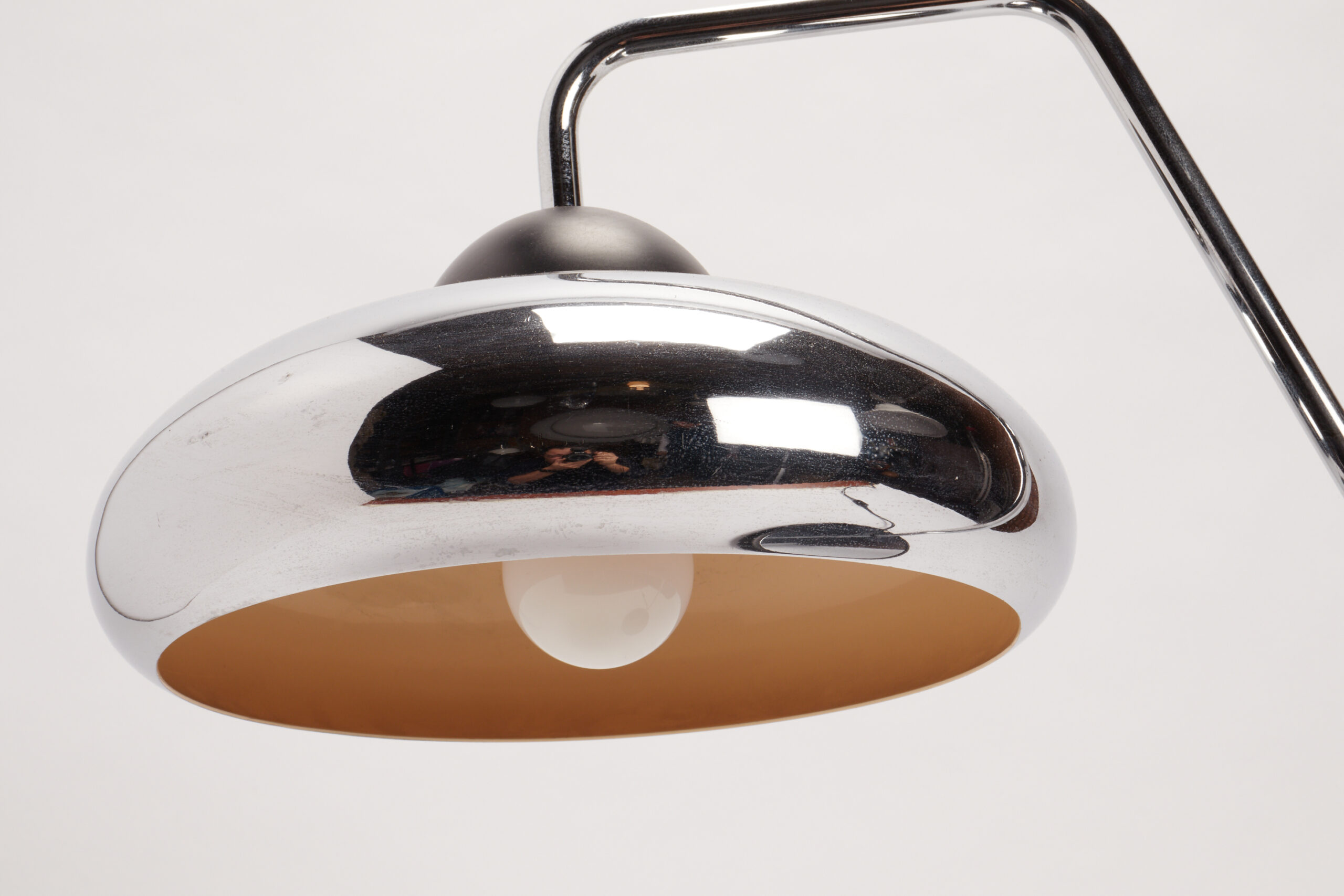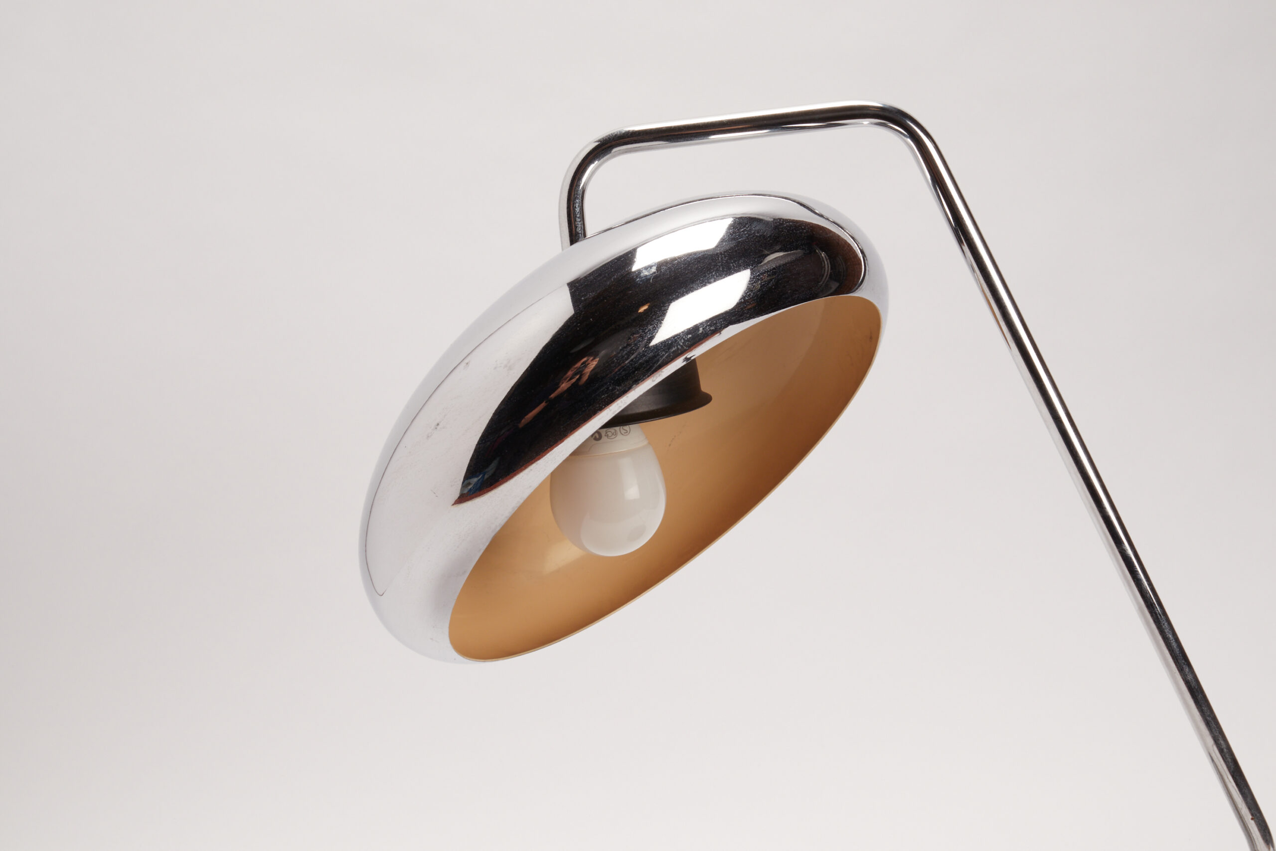 Desk office lamp, round black plastic base and steinless steel tube and shade, maker Stilnovo. Milan, Italy 1980 ca.