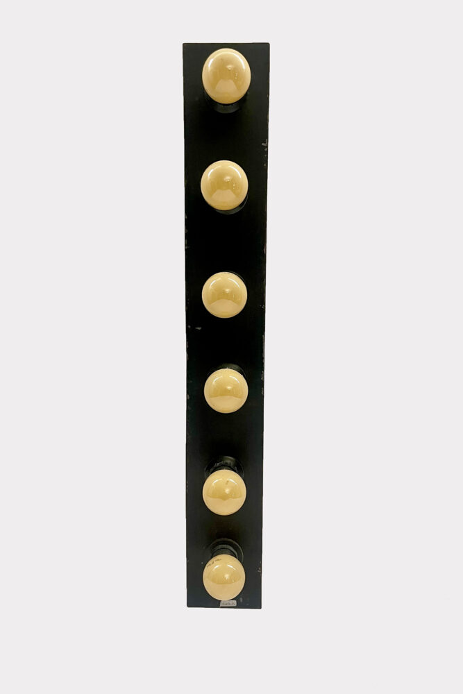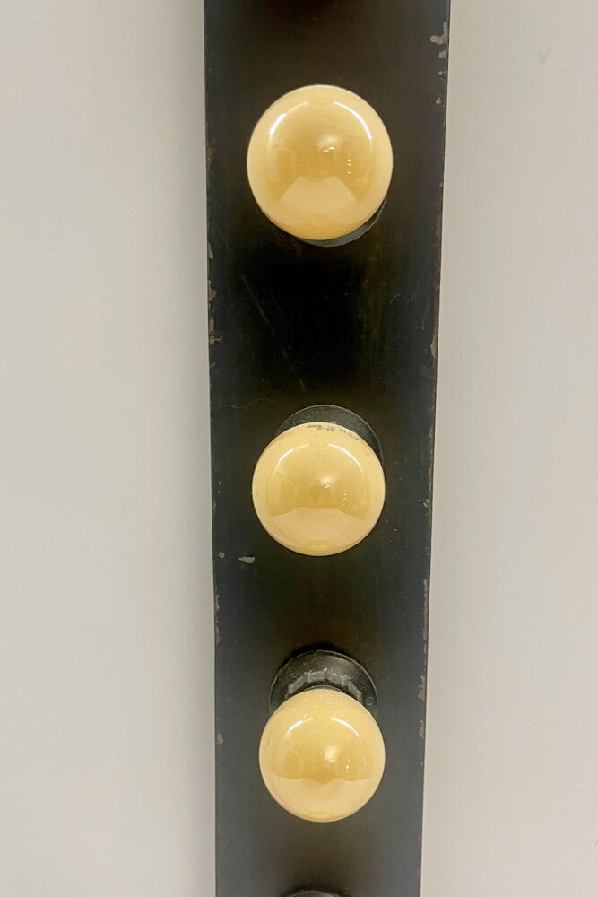 Lettera I in latta dipinta, colore nero, rielettrificata con lampadine, usata come insegna di un teatro. USA circa 1930.