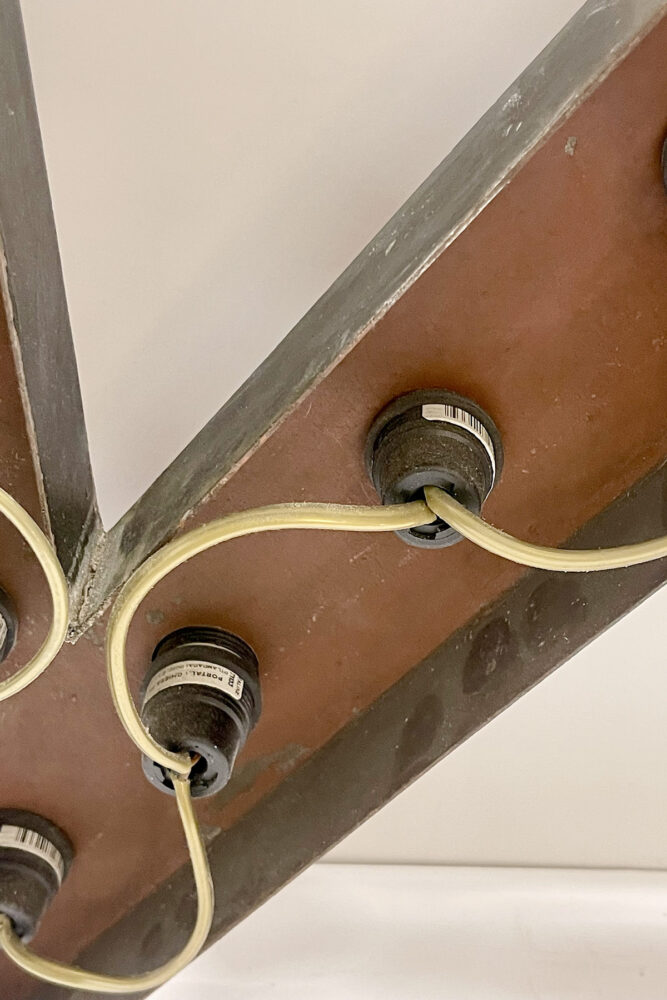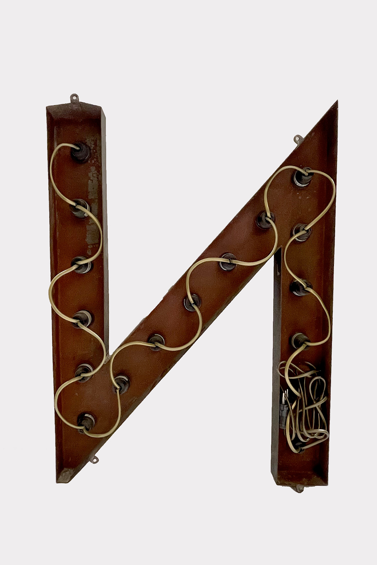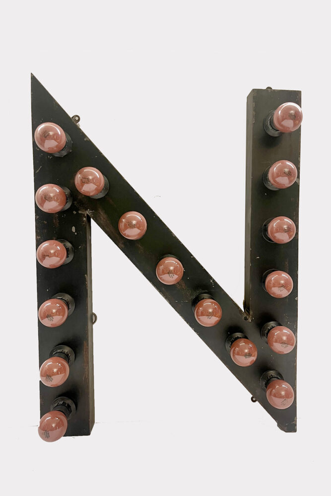 Lettera N in latta dipinta con lampadine, United States of America 1930.