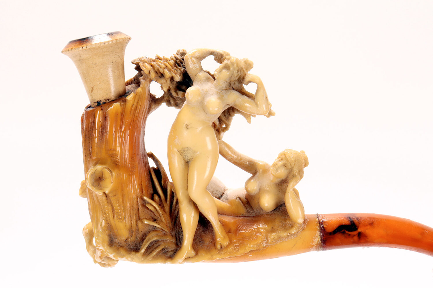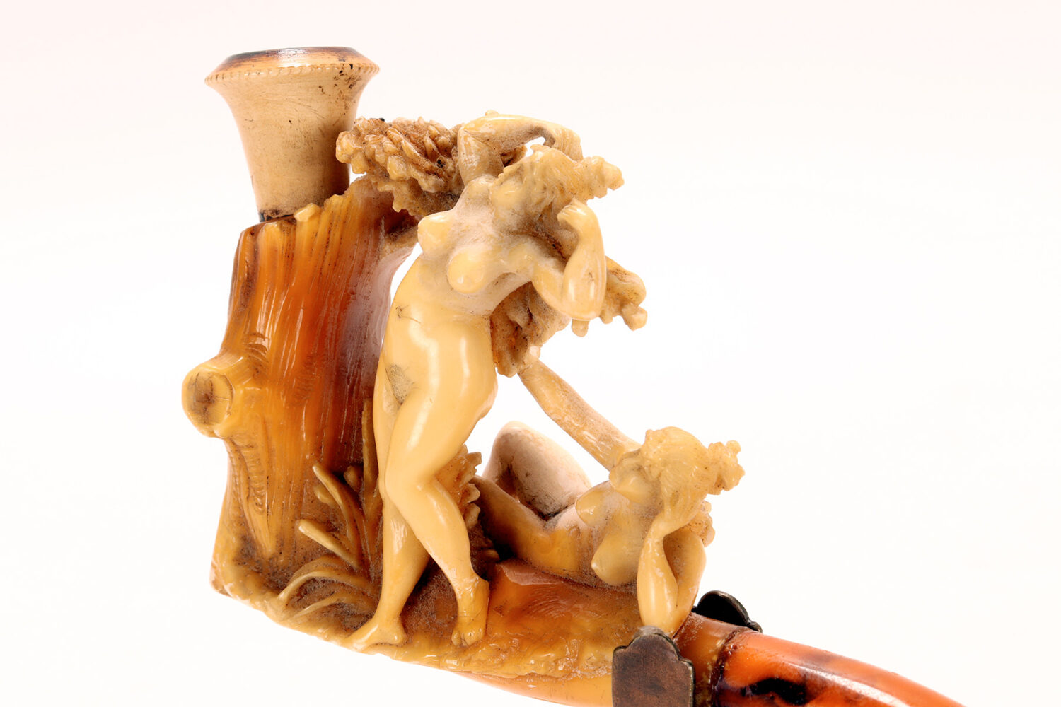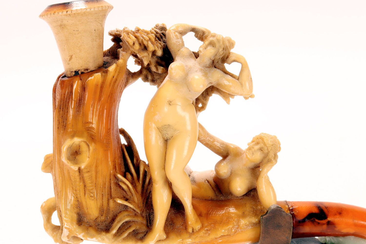Meerschaum pipe depicting an erotic scene from the myth of Daphne, Vienna 1890.