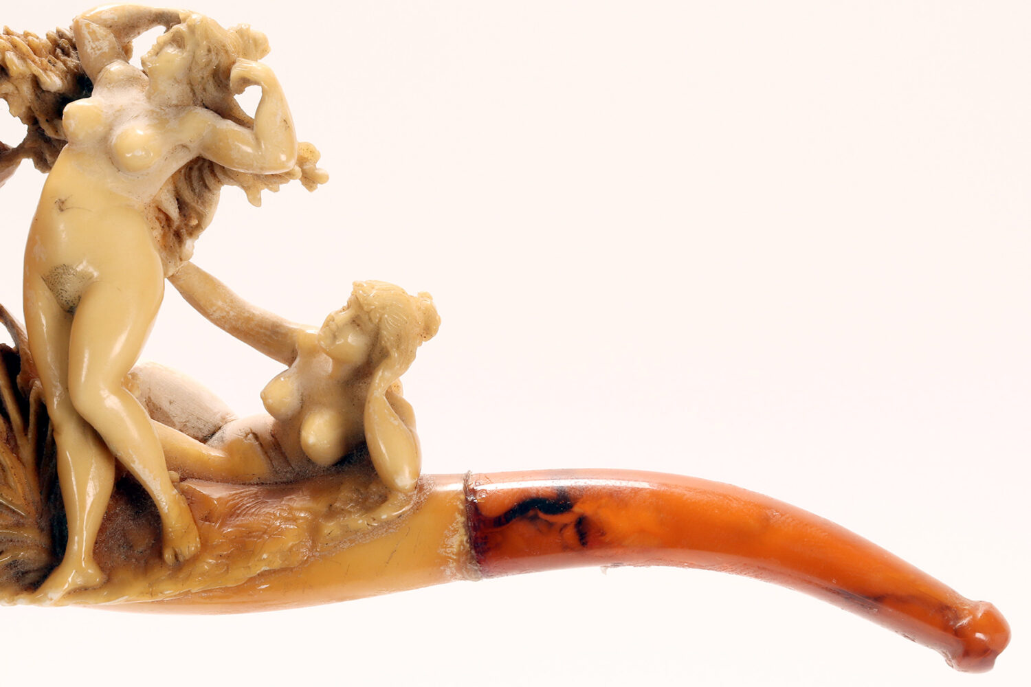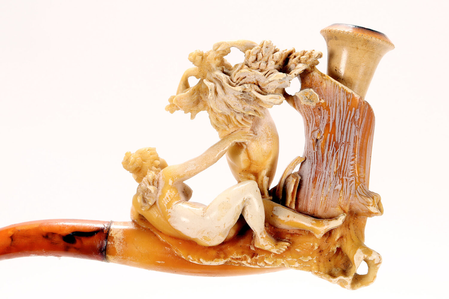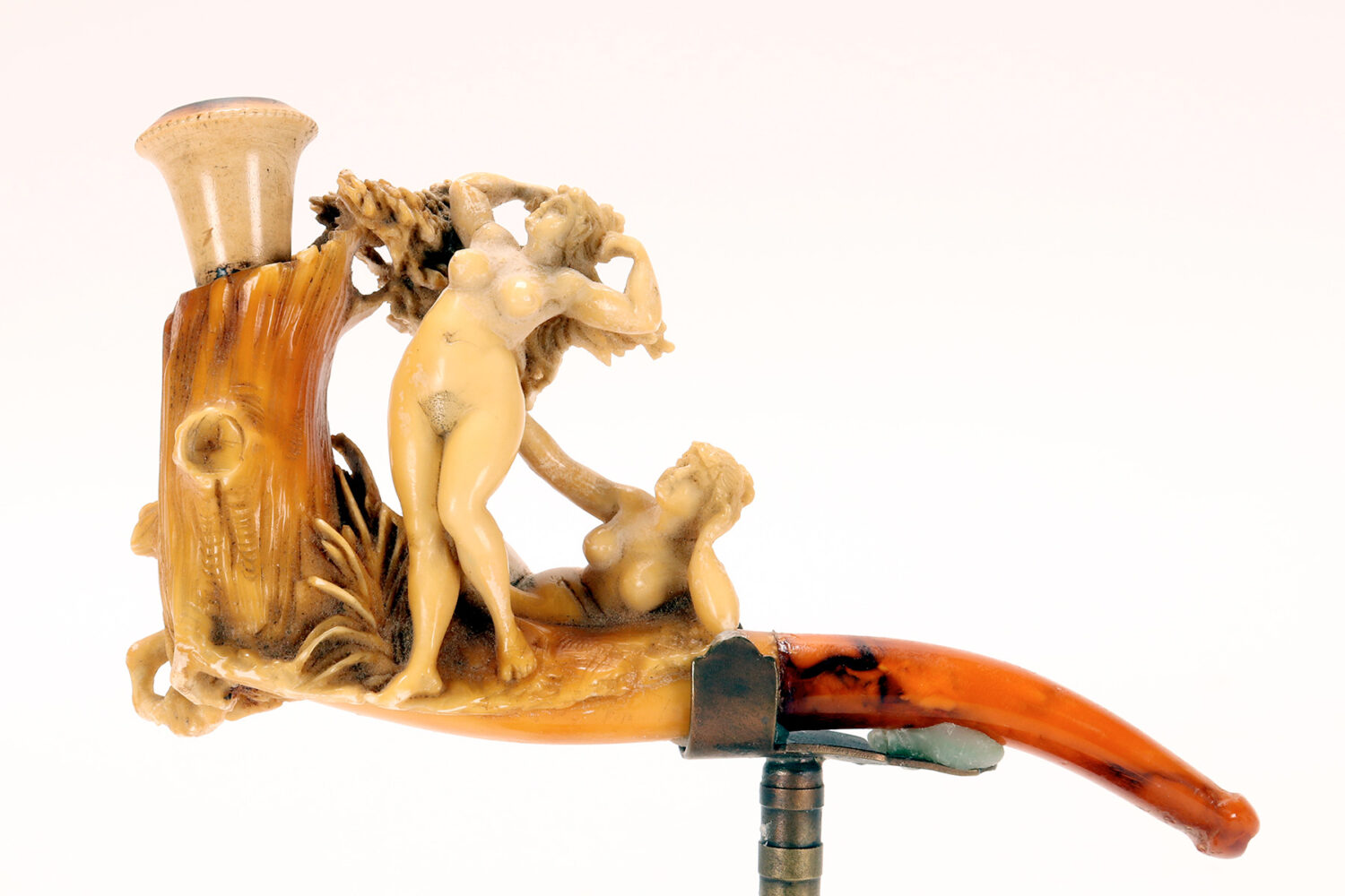 Meerschaum pipe depicting an erotic scene from the myth of Daphne, Vienna 1890.