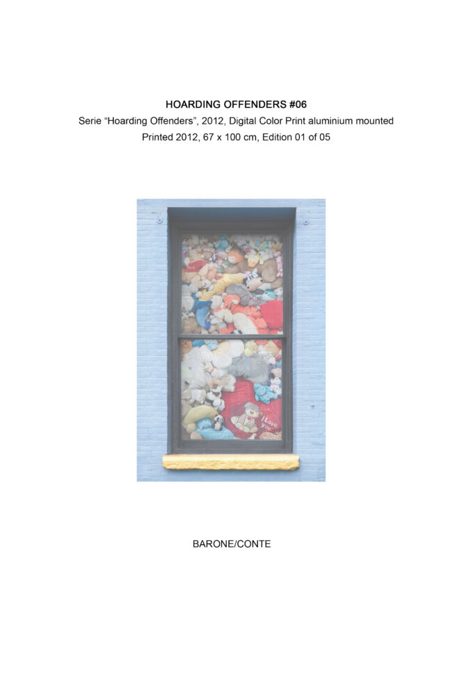 The project was stimulated by the observation of socio-behavioral phenomenon of compulsive accumulation (disposophobia) in progressive relief starting from the 1940s. Today it is estimated that there are more than 2 million compulsive accumulators in the United States. The windows therefore lose their original function and acquire a new one, a curtain through which the man possessed by his objects can be observed; but the project also lends itself to a more individualistic interpretation in its relation to the concept of identity and self-memory. Indeed, the theme of memory is by no means marginal if connected to its opposite, oblivion. What does it mean to remember? It means selecting pieces, moments in one’s life. In this sense, wanting to find a literary analogy, Baron / Conte’s “hoarders” are a bit like Borgers’ Ireneo Funes who remembers everything, keeping in his memory any shred of reality with which he comes into contact, and which eventually he will be paralyzed by the huge amount of his memories. And here the physical paralysis becomes an existential metaphor, in Borges as in the project “HOARDING OFFENDERS. My memories will never die ”by BARONE / CONTE.