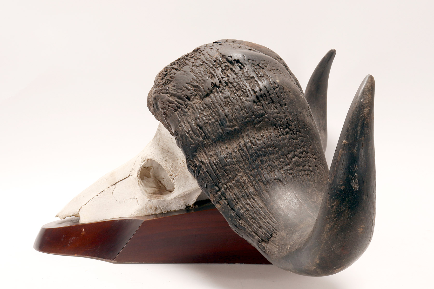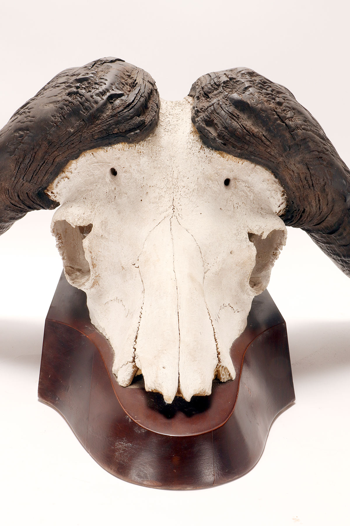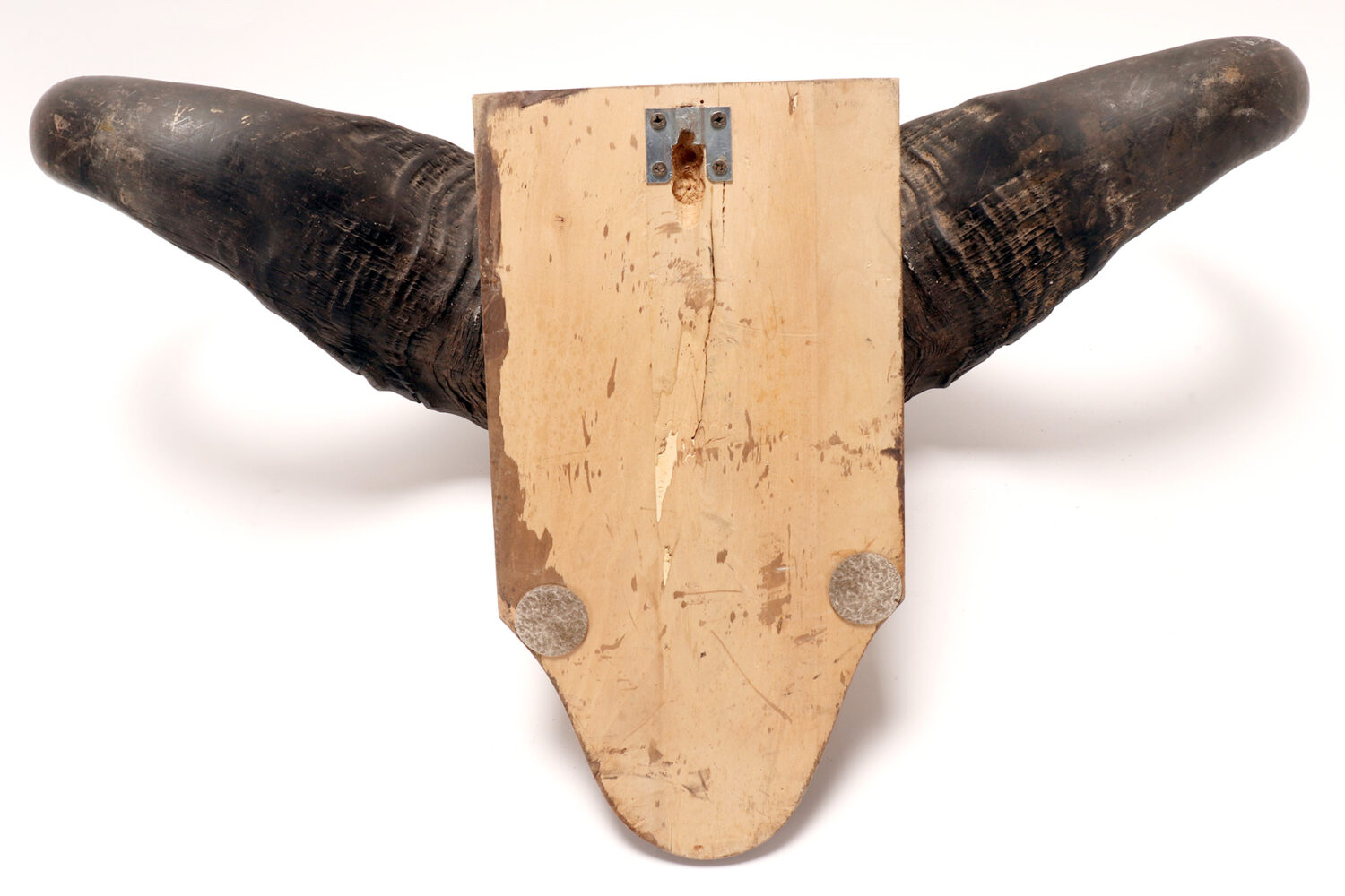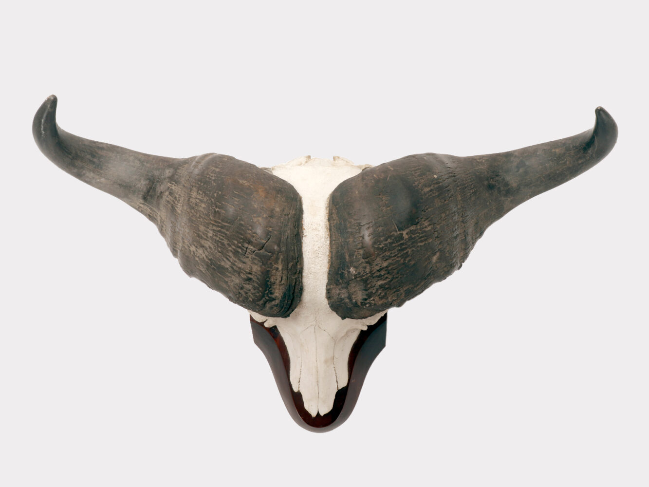 Natural specimen: a trophy of a bufalo skull, Africa 1890.