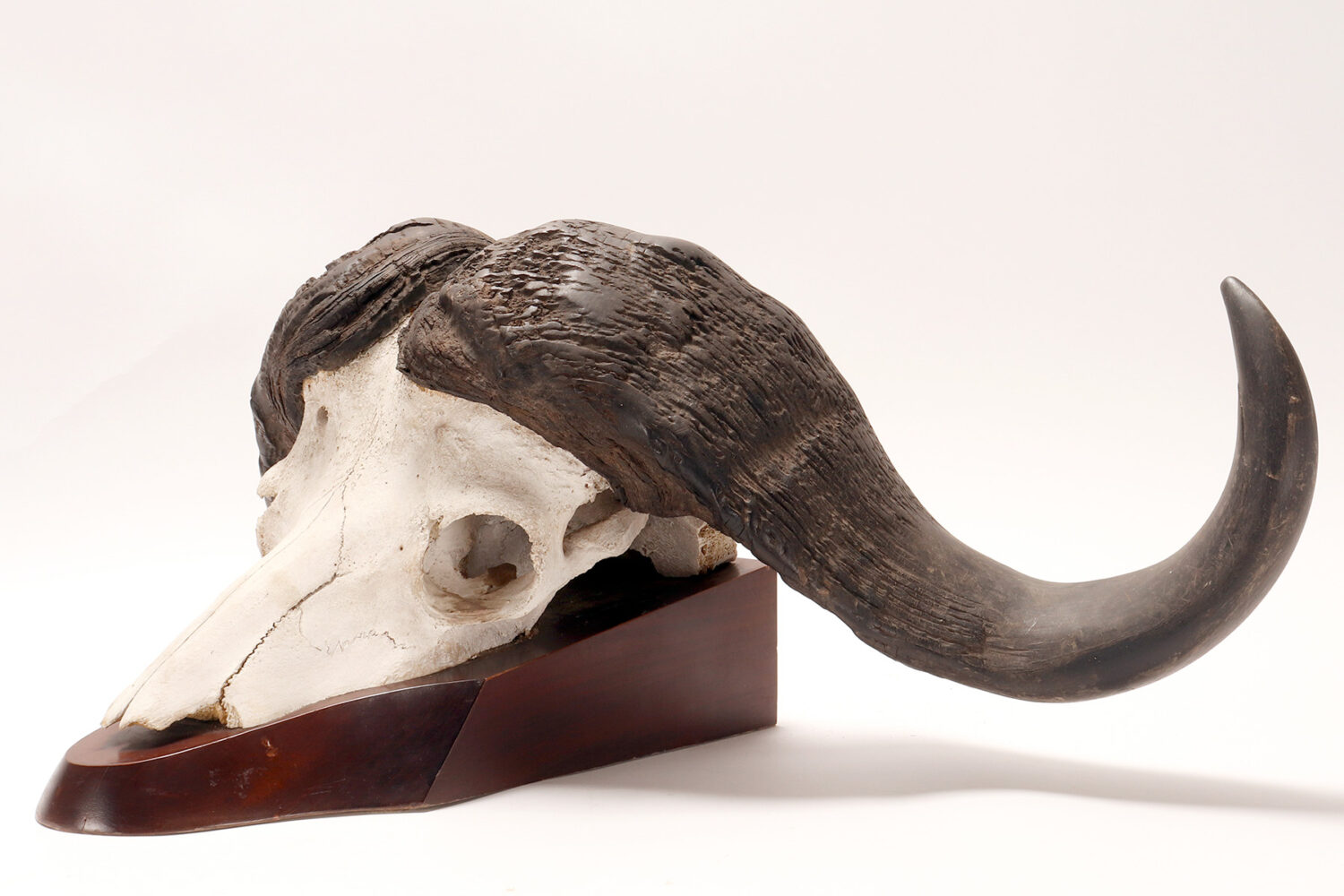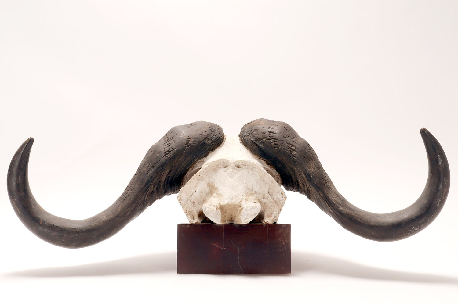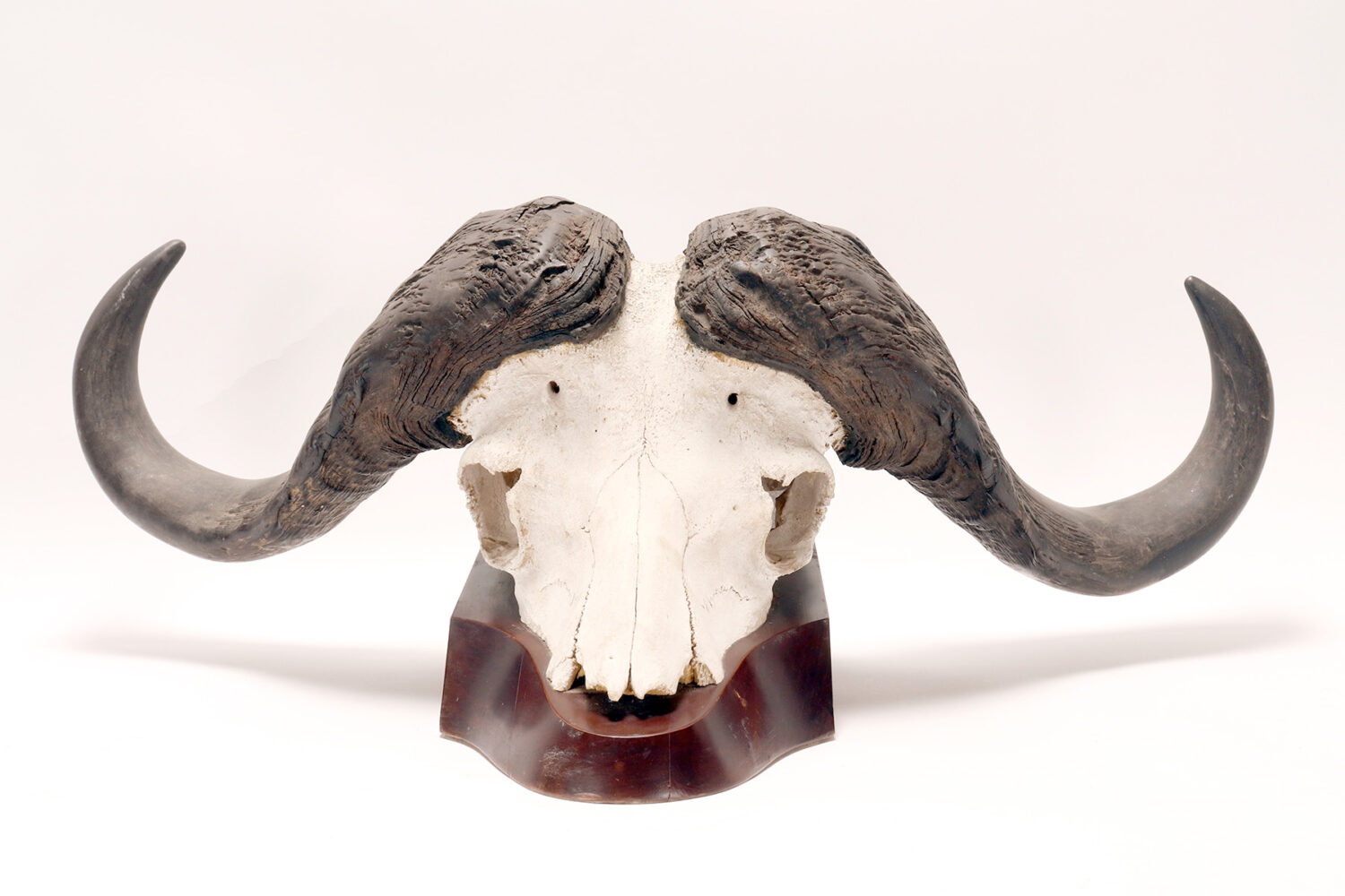 Natural specimen: a trophy of a bufalo skull, Africa 1890.