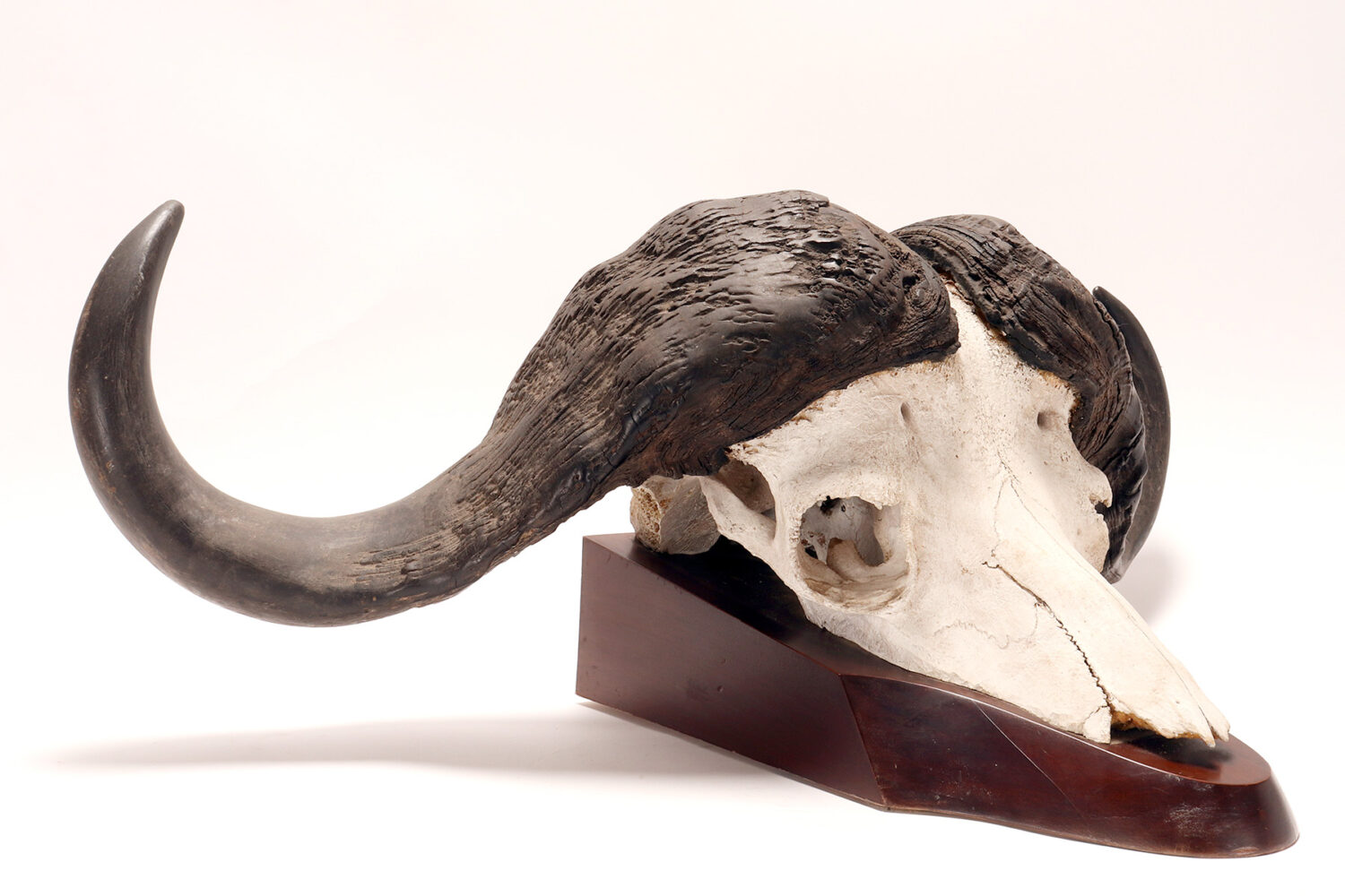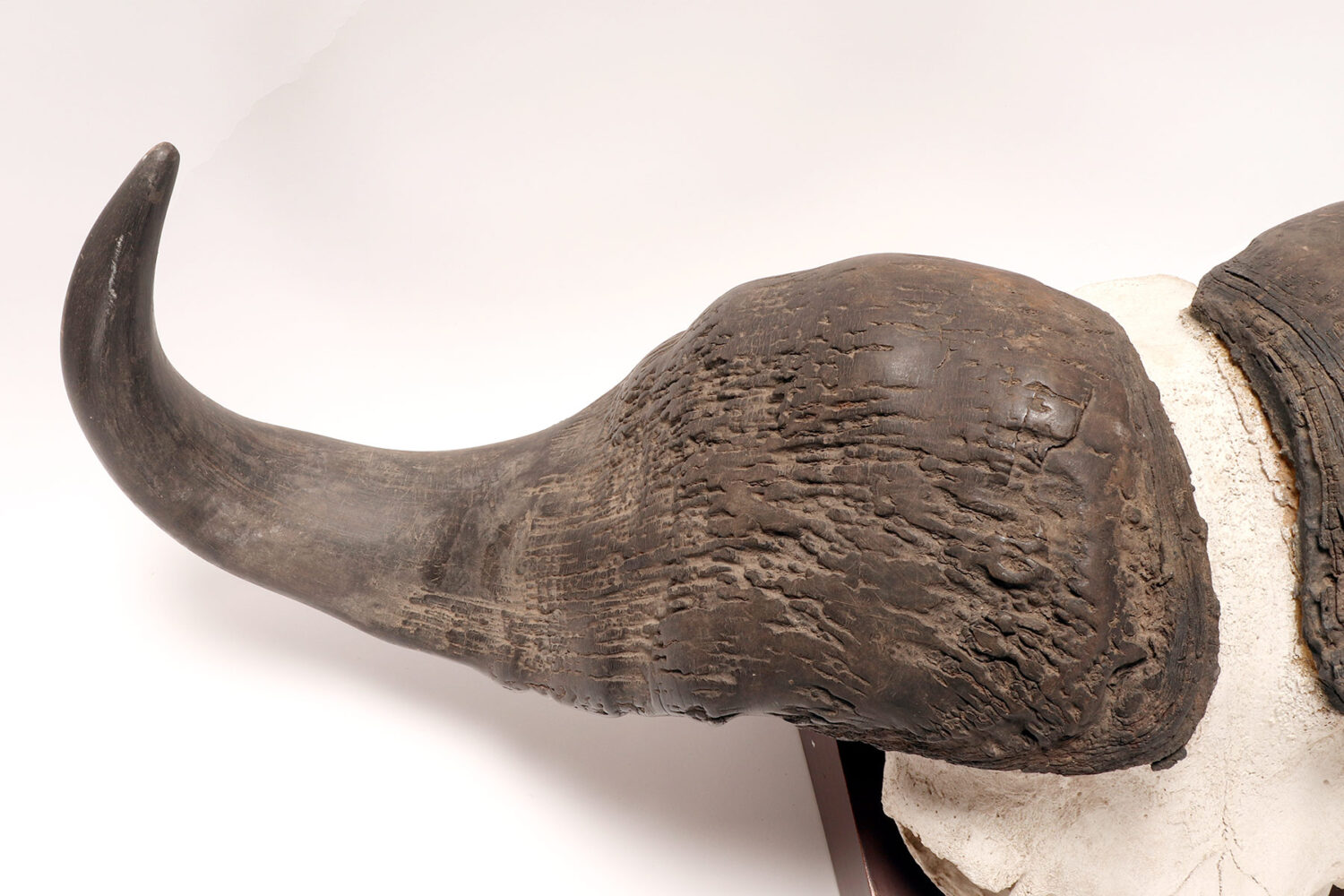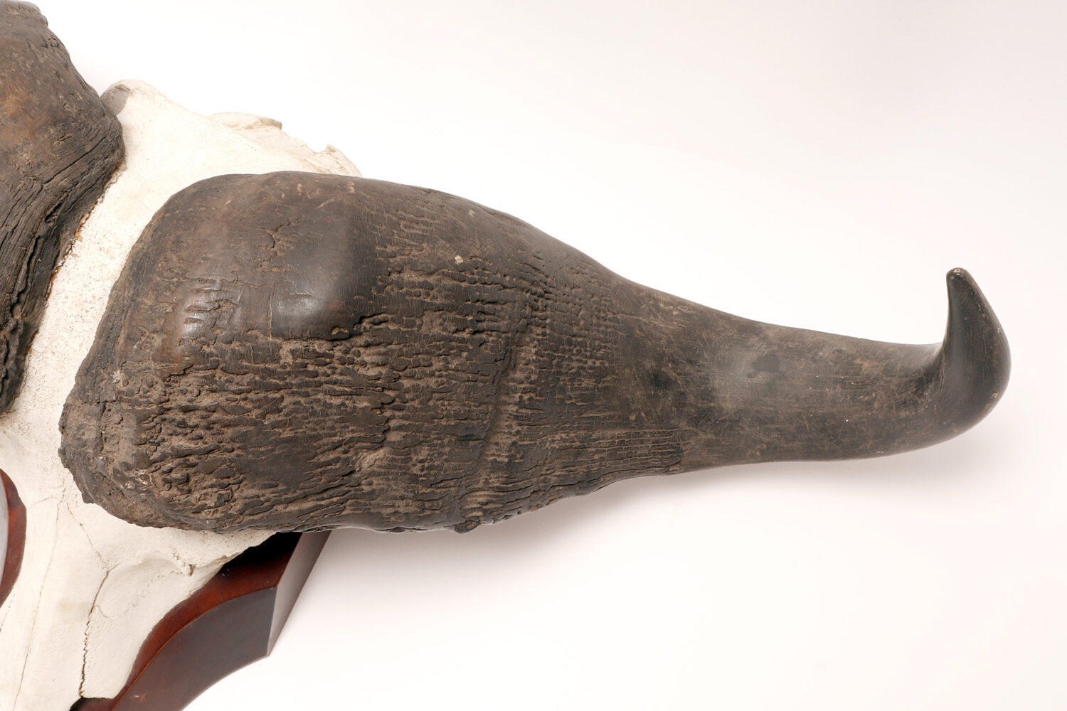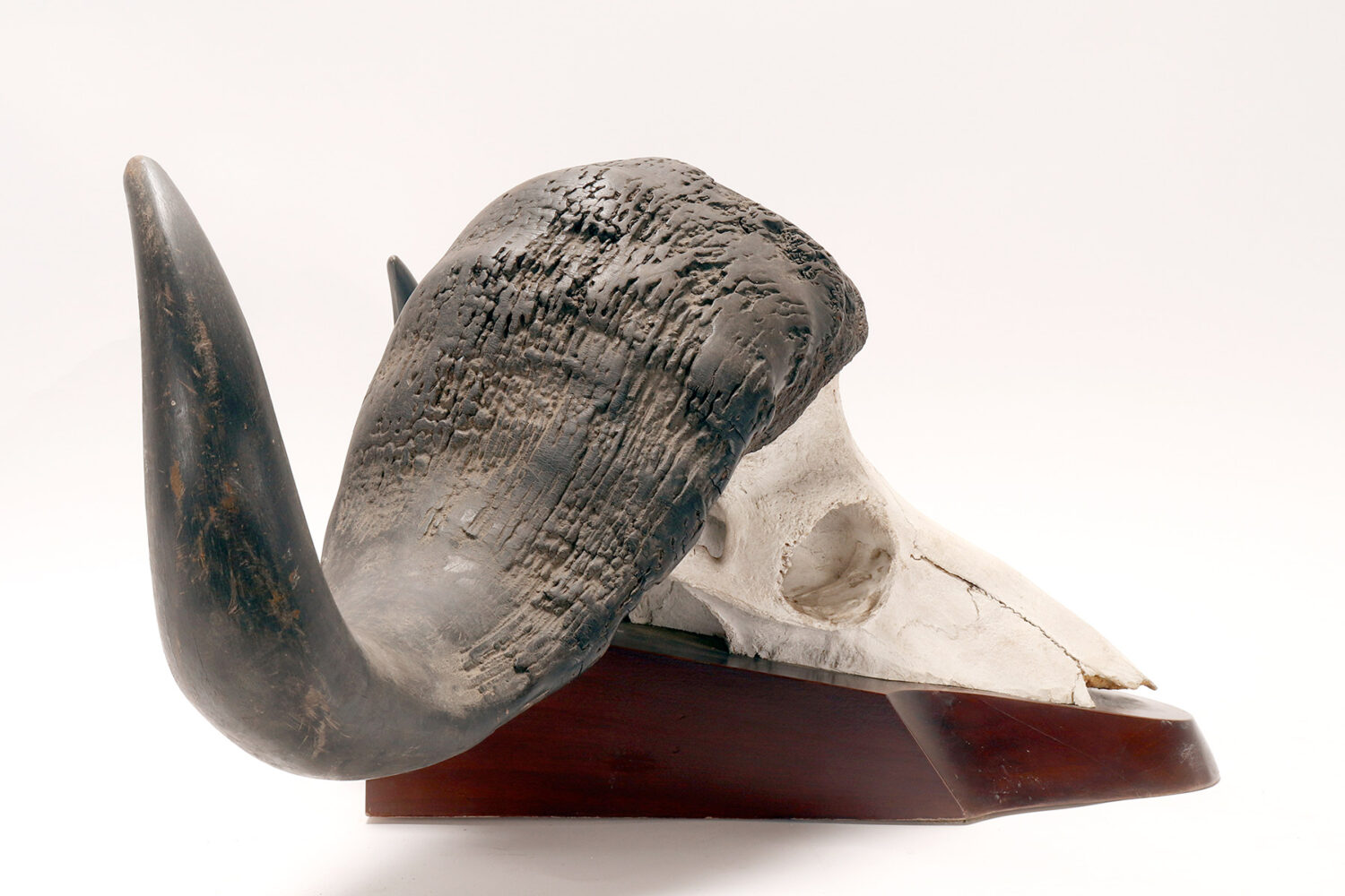 Natural specimen: a trophy of a bufalo skull, Africa 1890.