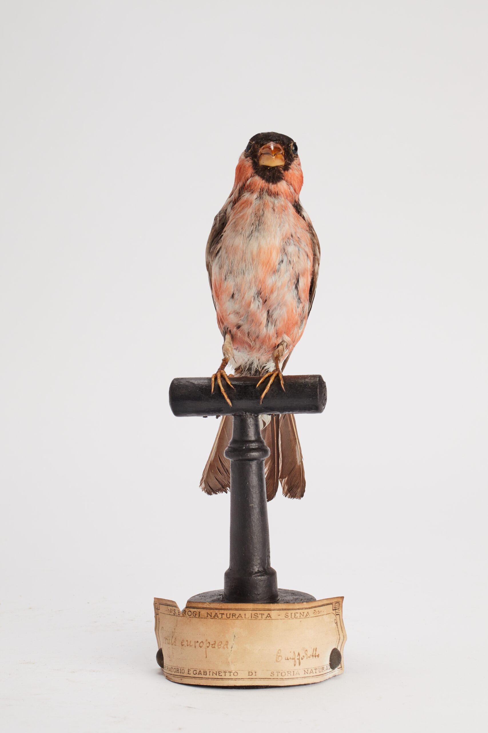 Stuffed bird for natural history cabinet: bullfinch, Italy 1880.
