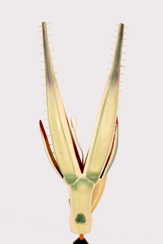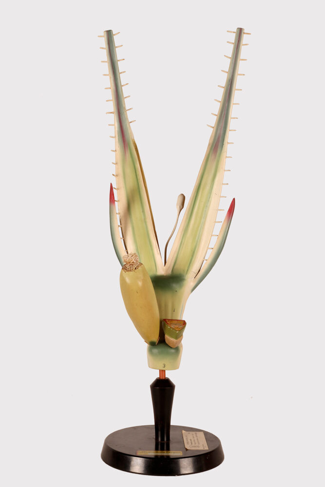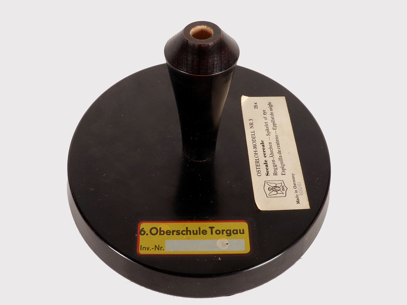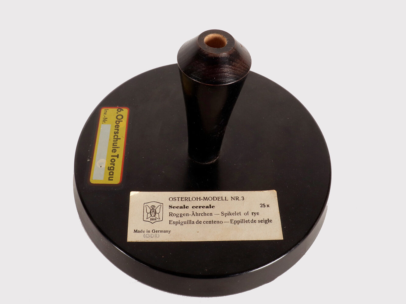 Un esempio di maquette botanica ad uso didattico raffigurante la Secale cereale, (Secale cereale L., 1753), nota anche come segala, una pianta erbacea della famiglia delle Poacee. Realizzata in carta pesta, legno e ferro dipinta a mano, base in bachelite di colore nero. Smontabile ed estremamente dettagliata. Osterloh Modell n.3. Germania prima parte XX secolo.