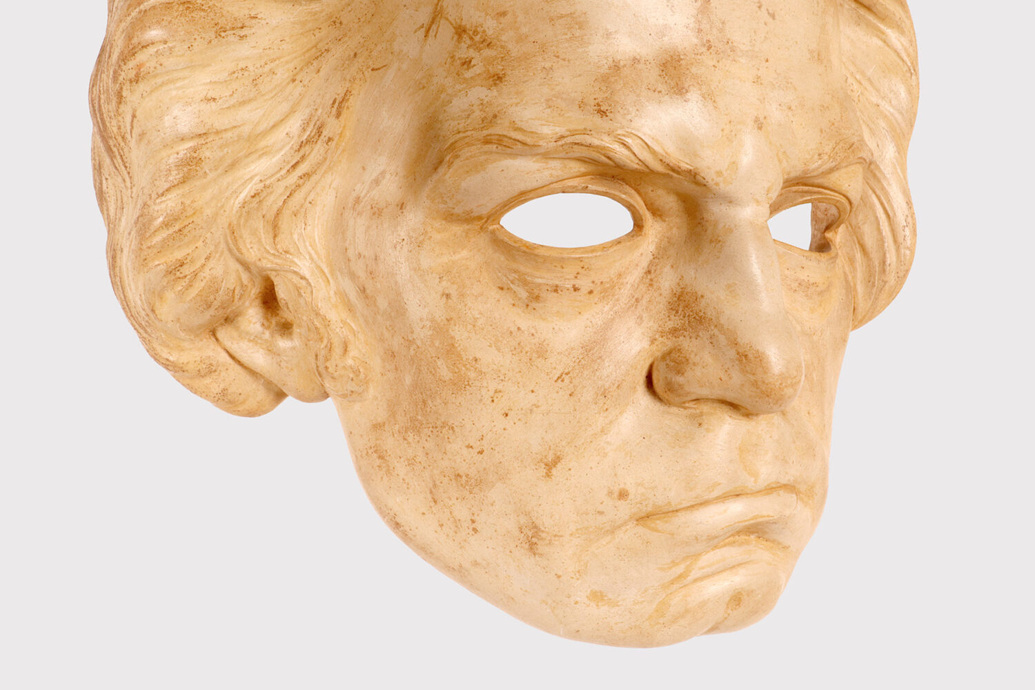 Un ritratto a maschera di Ludwig Van Beethoven in terracotta, firmato Angelo Galli, Italia 1922.