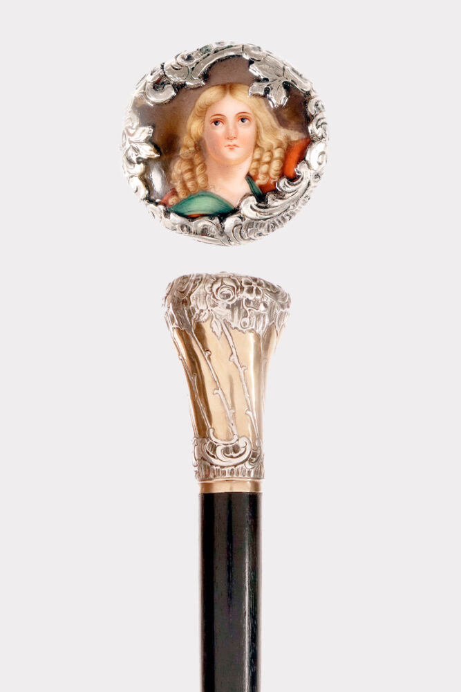 Walking stick, silver knob with painted miniature depicting St. Luke, signed Giulio Zanetti, Italy 1850-1860.